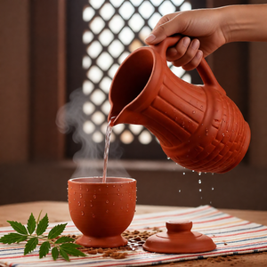 Traditional Handcrafted Design: Features a beautifully detailed design with a sturdy handle and lid for easy pouring and storage.