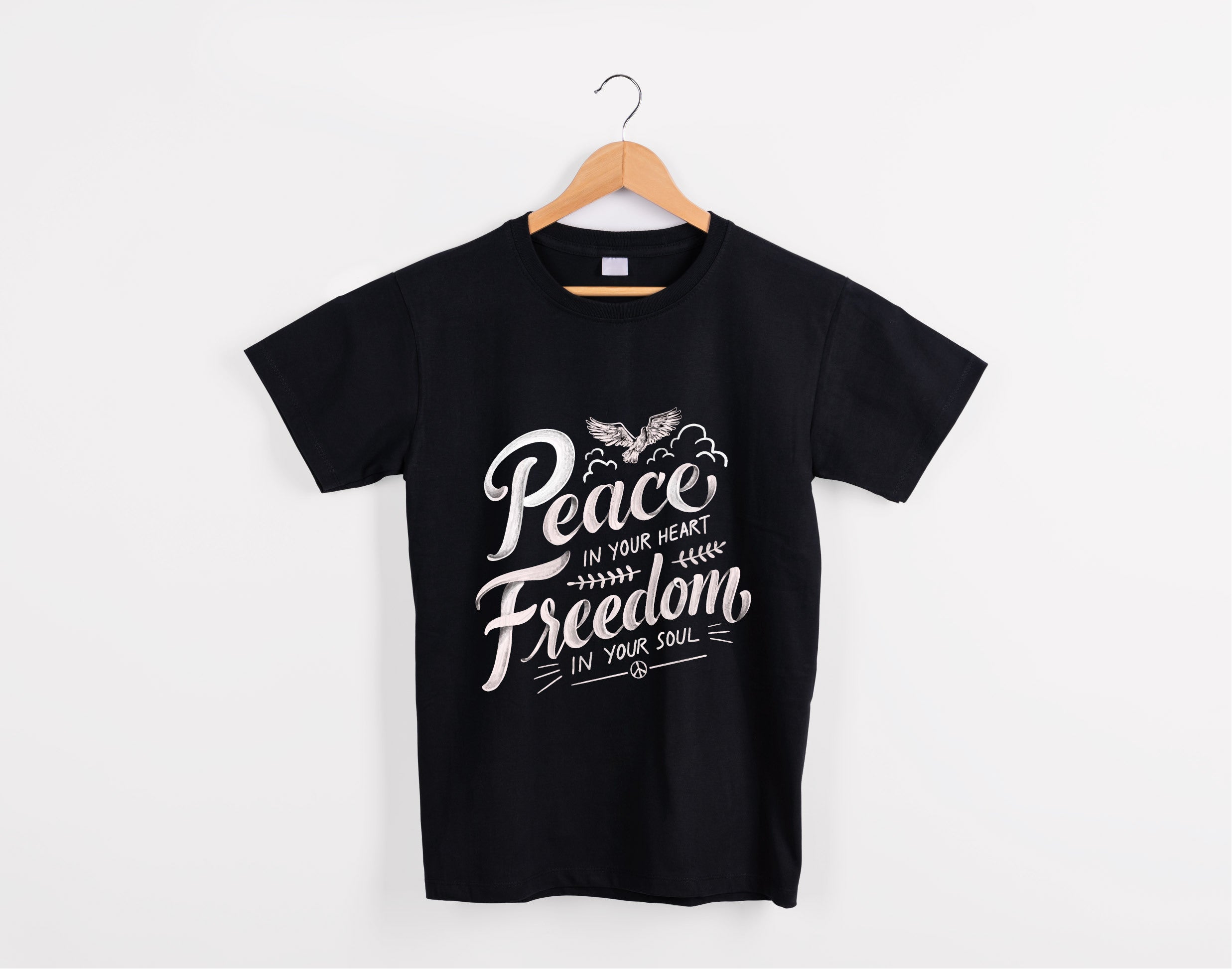This Peace & Freedom T-Shirt combines minimalist design with a powerful message, “Peace in your heart, Freedom in your soul.”