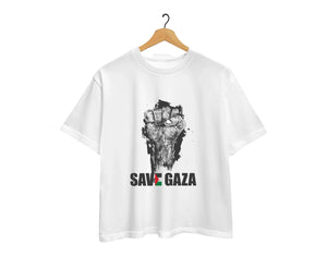 This Save Gaza T-Shirt captures the spirit of resistance with its bold fist design. a timeless symbol of unity, struggle, and hope for freedom. Printed in striking black with the Palestinian flag accent, it’s made to stand out and speak loud.