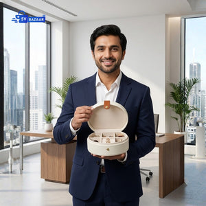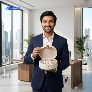 The White Semicircular Organizer Gift Box is a stylish and practical storage solution, perfect for keeping small items organized. With its elegant design and compact size, it makes a great gift box for special occasions or a chic storage option for everyday use.